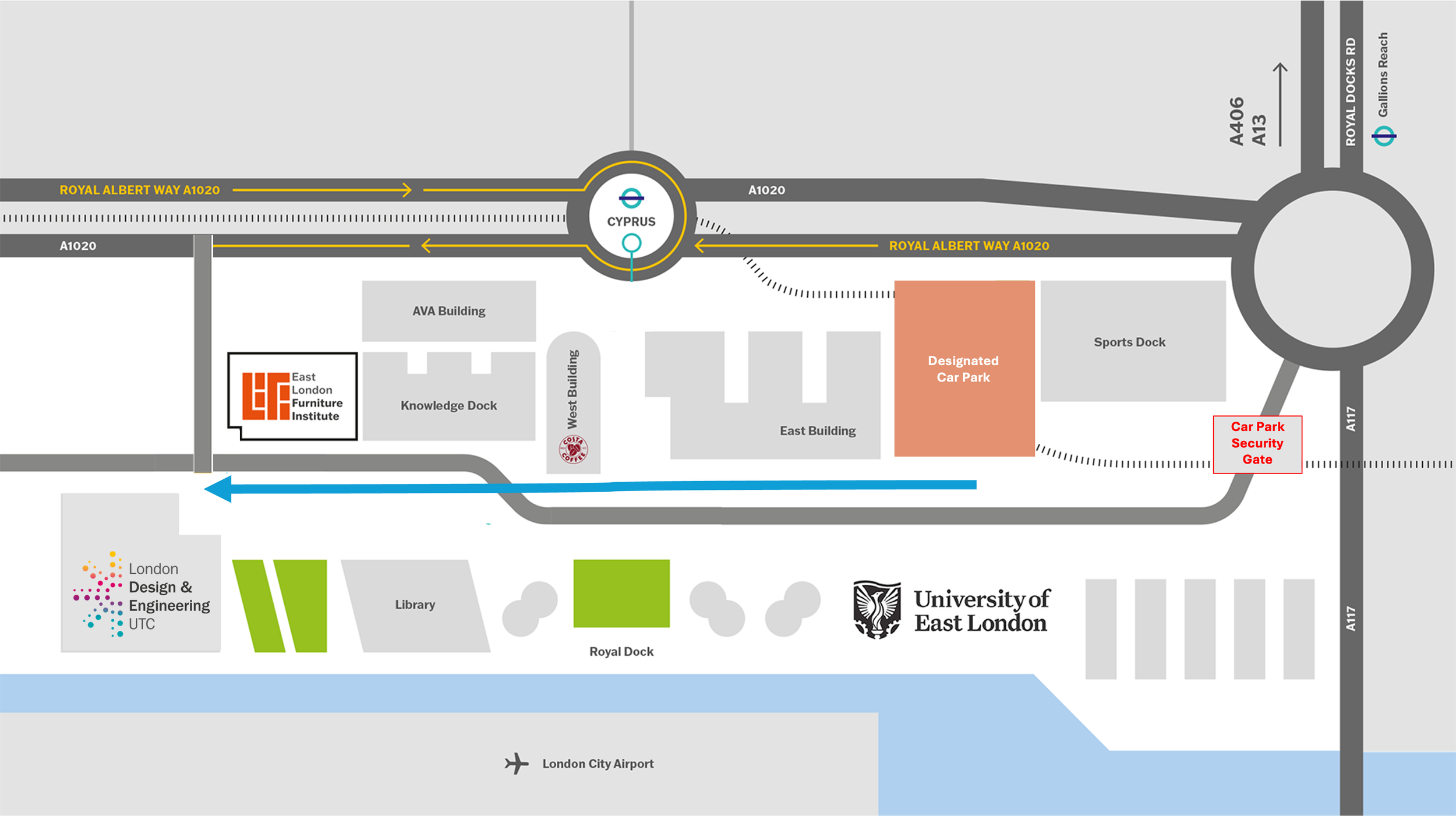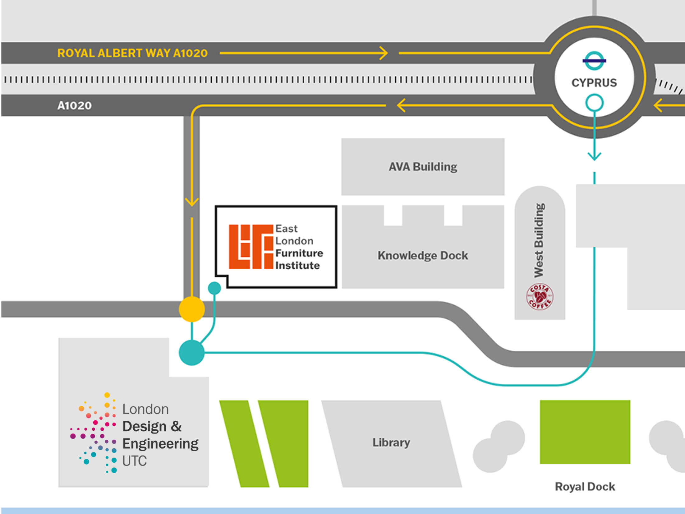Alight at Cyprus DLR station, then walk over the bridge into the University of East London campus. From there, follow signage to the London Design & Engineering UTC.